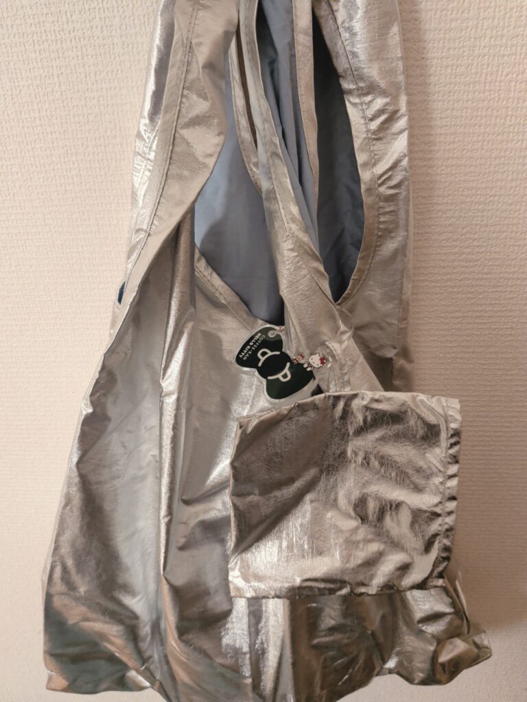 私はエコバッグの収納袋をなくしがちなので、 袋をエコバッグに直接つけて使っています。