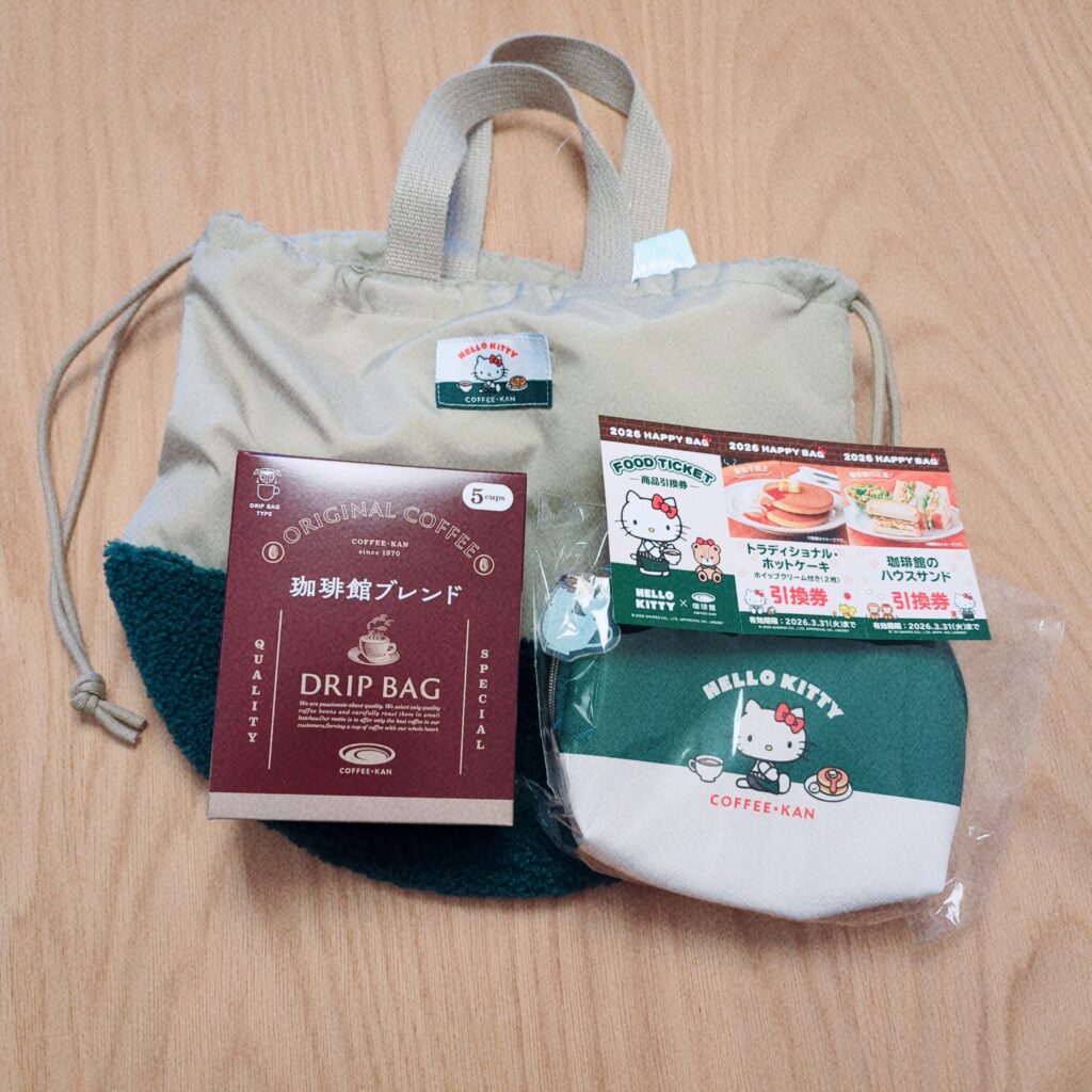 実は今回、気になっていた「キティちゃん×珈琲館」のコラボハッピーバッグを購入したので紹介したいと思います🎀