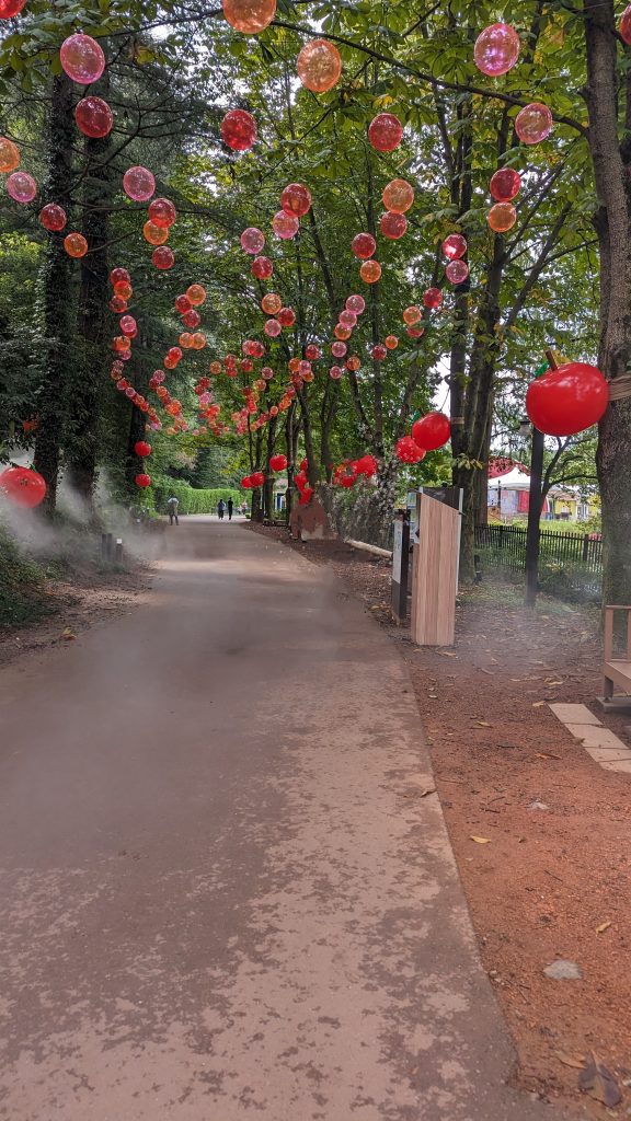 道では霧やシャボン玉を定期的に噴射していて、子どもたちは、喜んで走っていました。